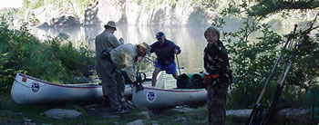 Wear your life jacket! State law requires to have one with you, but only works if your wearing it. This is especially important when crossing large lakes or in windy conditions. Strap or secure all Duluth Packs to the canoe, if you do dump the canoe stay with it and it will support you and all your gear whether right side up or upside down. Paddle along the shore line to assist in navigation and for safety sake, especially important early and late in the season when cold waters can bring on hypothermia quickly. Keep your body and gear centered in the canoe, you can move your arms and legs but your back side should stay in one place. Take special care when loading and unloading as well as fishing. Paddling partners should paddle on separate sides of canoe, when you get tired call a switch, take one more stroke ands switch sides. When paddling against a wind put weight towards front and do directly into the wind, when paddling with the wind put weight towards the back. Don't get turned sideways into waves or wake, as you could swamp, go into them head on. Stay off of big water or close to shore in windy conditions. In strong winds get to shore and stay there. If you are windbound, well pick you up the next day, no extra charge. Generally early starts on travel days is a good idea. Winds usually begin in the late morning or early afternoon and subside by evening.
